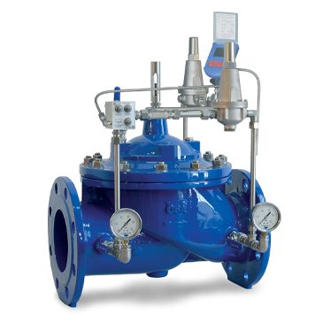 The CSA model XLC 310/410-ND is a globe pattern hydraulically operated automatic control valve that reduces and stabilizes the downstream pressure to two pre-set and adjustable values, regardless of variation in demands and upstream pressure conditions, usually corresponding to night and day regulation.